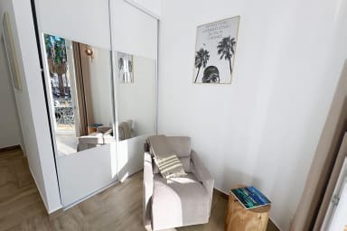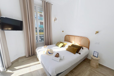 Dès l’entrée, vous serez séduit par sa grande pièce lumineuse aux hauts plafonds et à la décoration soignée 🌿. Le coin nuit offre un lit double 160 cm, une TV murale, un espace lecture cosy, et un grand dressing pour vos effets personnels. Cerise sur le gâteau : un charmant balcon d’angle, parfait pour savourer un café au soleil ☕️ ou un apéritif au coucher du soleil après une journée sur la Croisette 🌅.