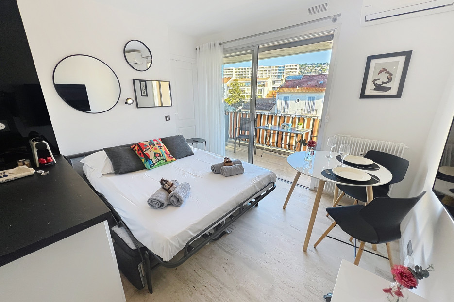 Studio charmant rénové avec goût en 2022 , capacité d’accueil de 2 personnes. Il se compose d’une pièce à vivre avec canapé convertible pour deux personnes et matelas de qualité, cuisine séparée entièrement équipé avec machine à café Nespresso, lave-linge, lave-vaisselle, réfrigérateur, plaques de cuisson. Résidence de standing, calme et sécurisée, ascenseur. Centre ville à 2 mns Bienvenue!
